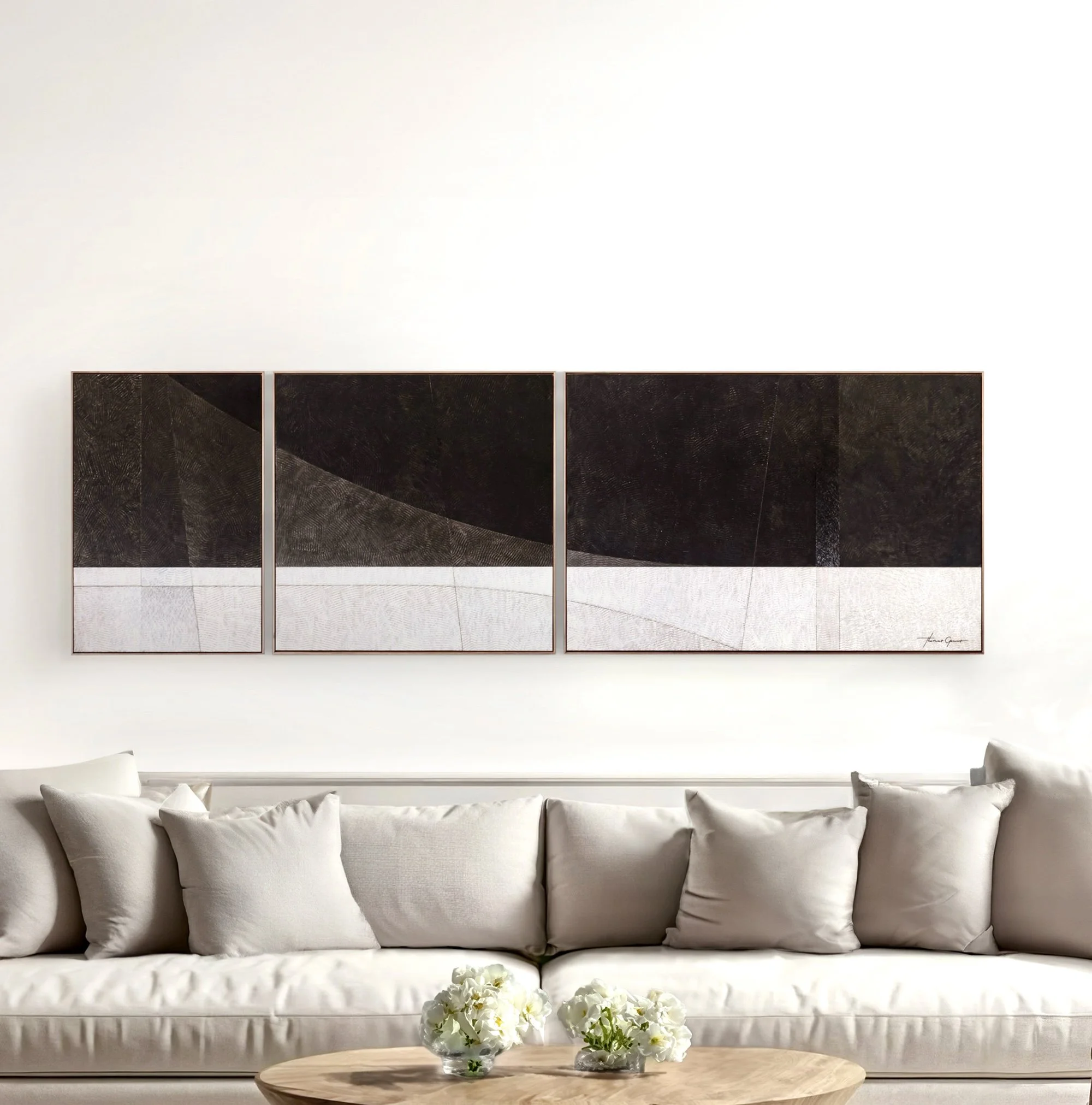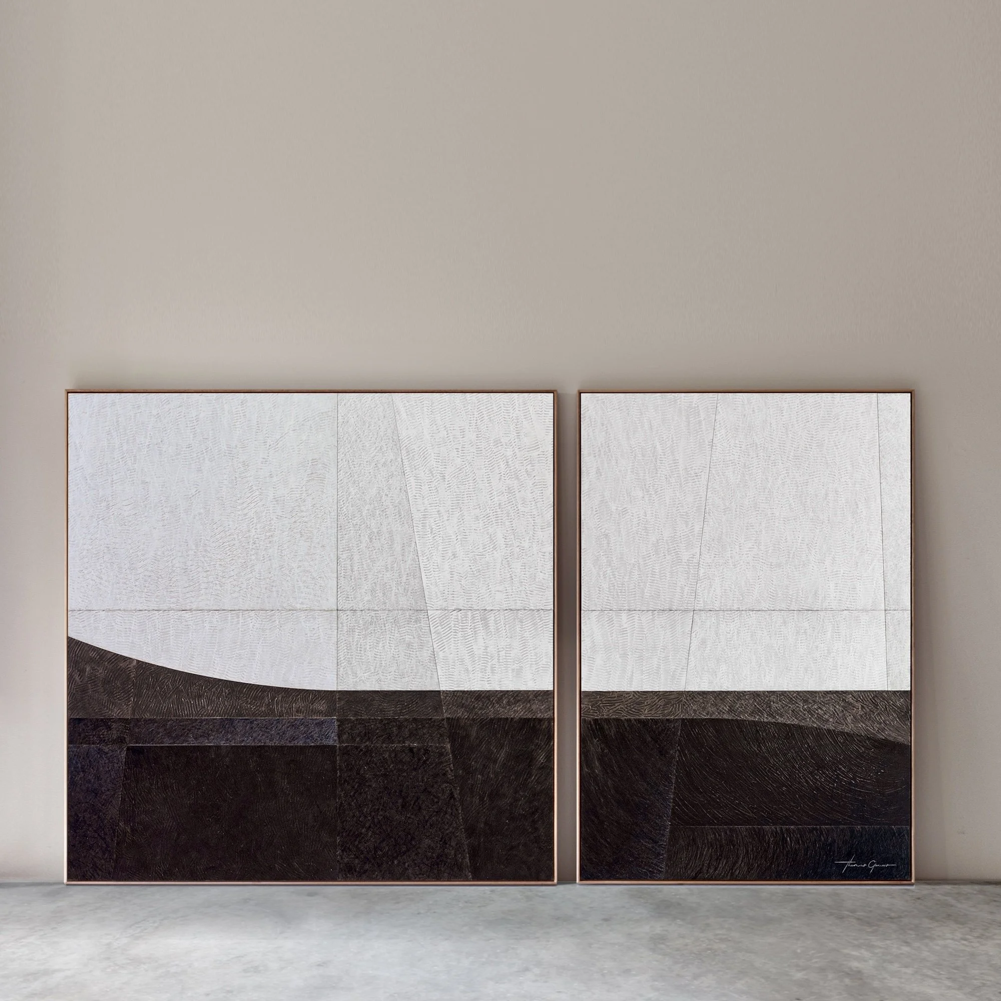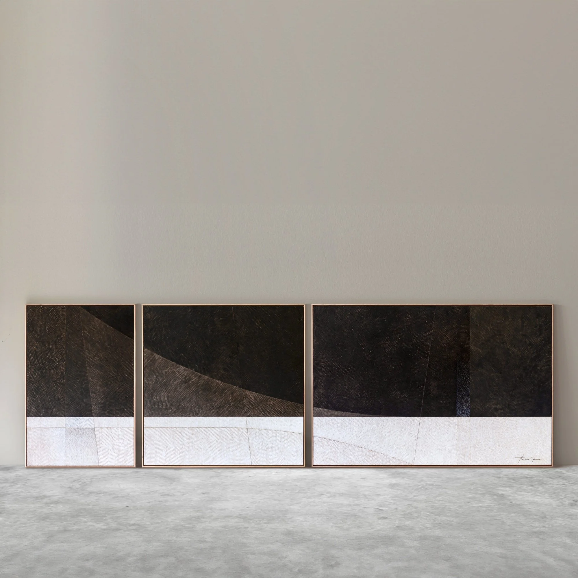 Whether placed in a residential or commercial setting, his work integrates seamlessly, echoing the ethos of well-designed space. Each artwork is quiet, confident, and composed—designed to stand the test of time and style.