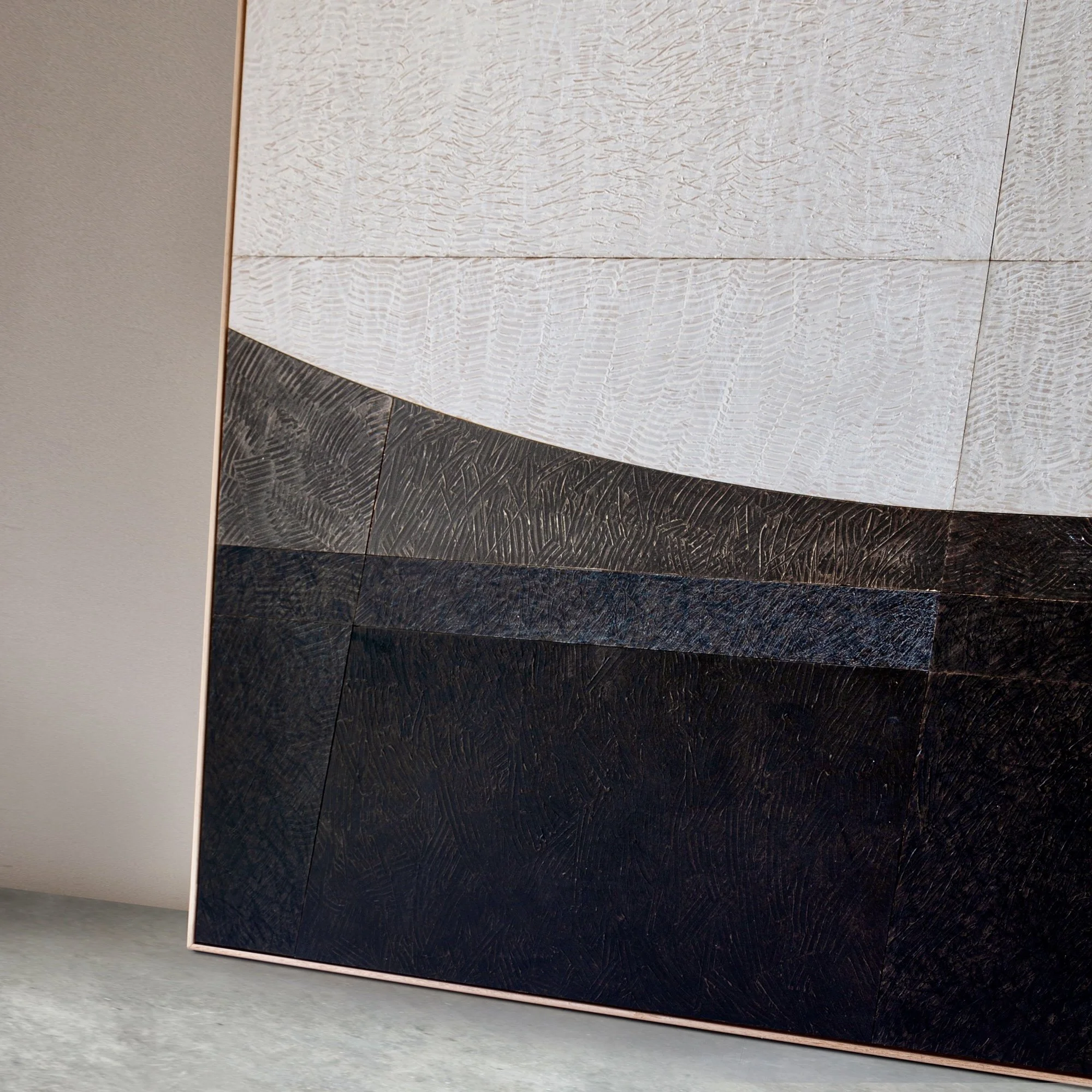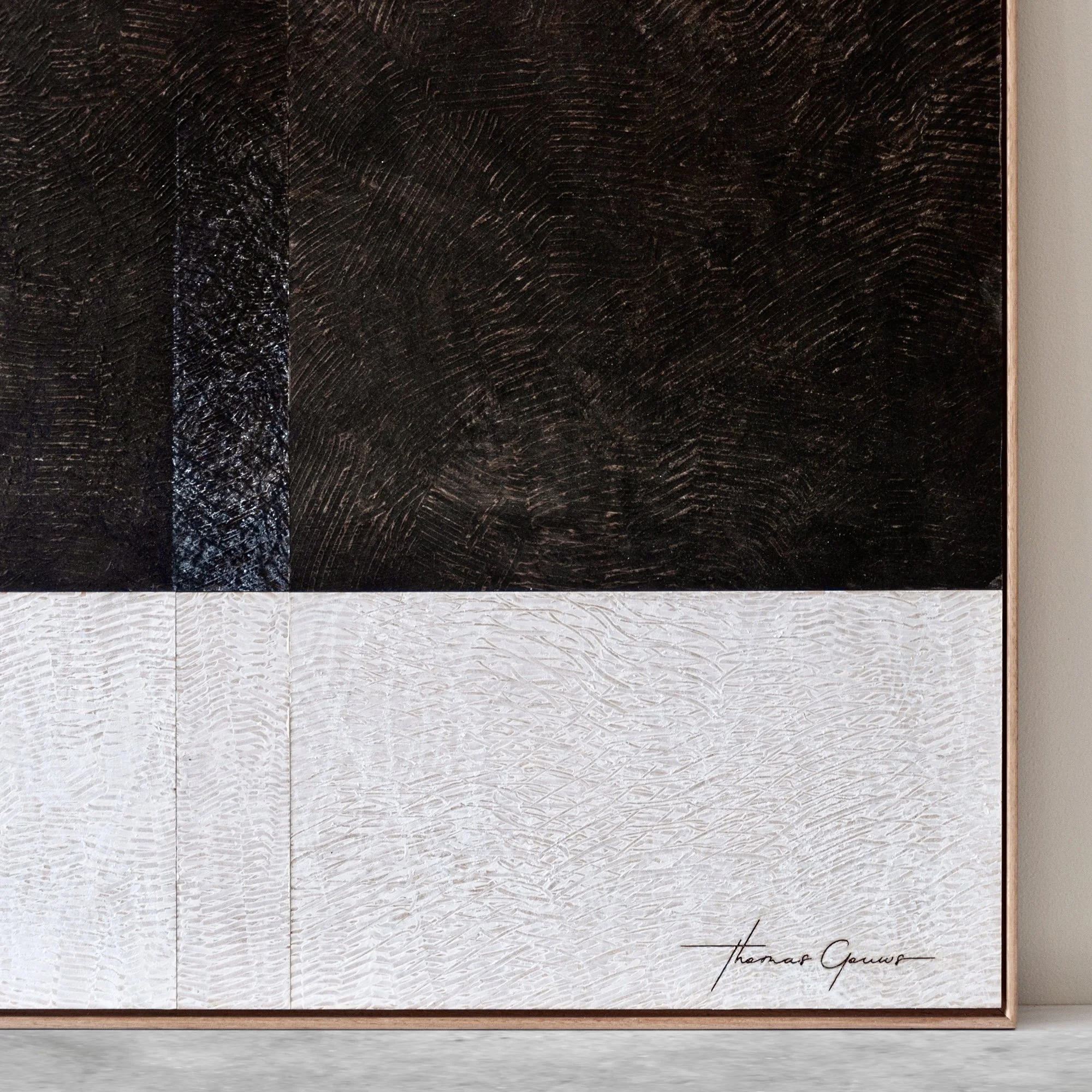 Thomas’s work is about stripping away excess to uncover clarity. With bold yet minimal gestures, he explores how shape, texture, and negative space can create balance and quiet strength. His art is not decorative—it’s deliberate. Each piece is composed to offer a moment of stillness and spatial awareness, much like architecture that breathes.